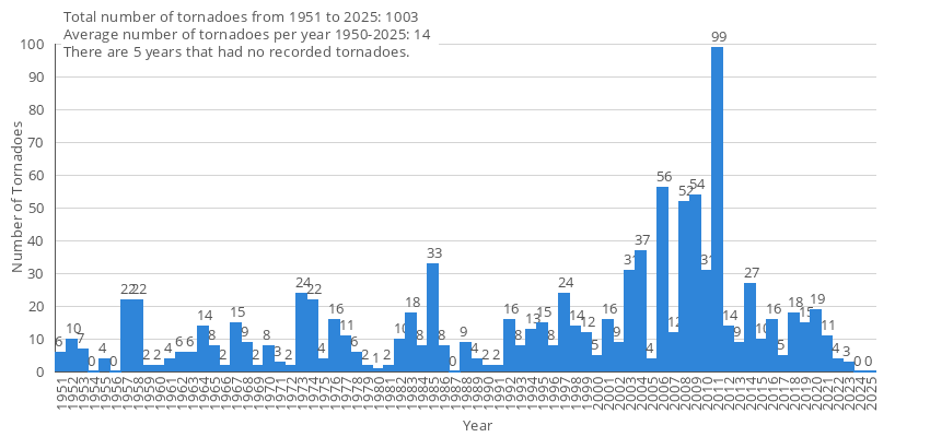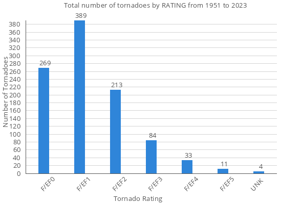 The paths on the map above represent the tornado tracks of all the tornadoes listed in the table below. You may need to zoom in one or more times to view the shorter tracks.