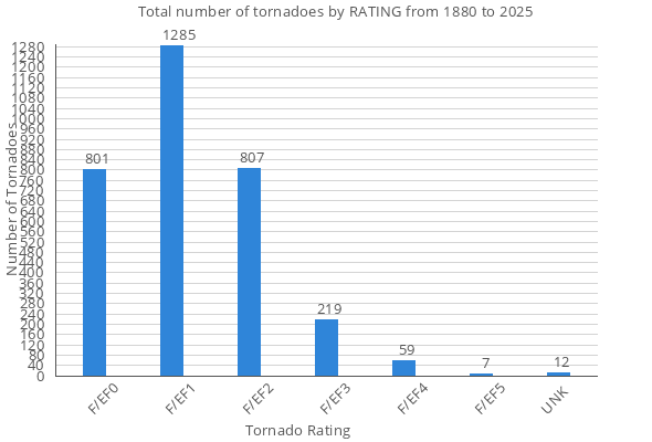 The paths on the map above represent the tornado tracks of all the tornadoes listed in the table below. You may need to zoom in one or more times to view the shorter tracks.