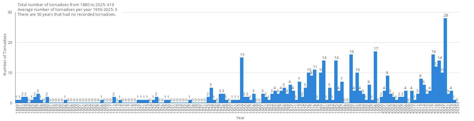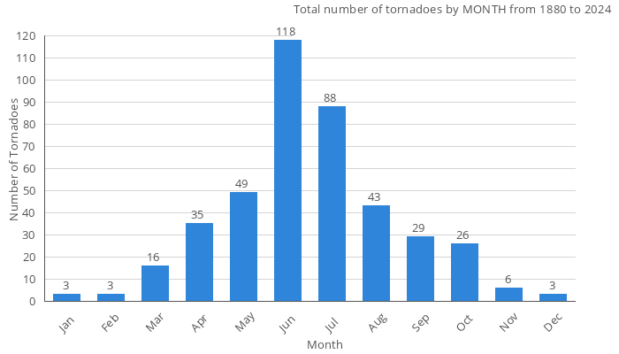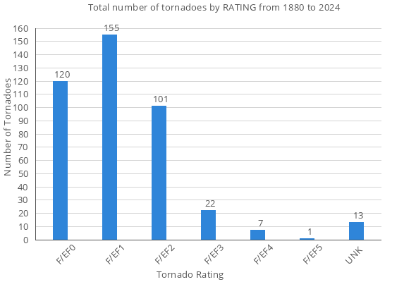 The paths on the map above represent the tornado tracks of all the tornadoes listed in the table below. You may need to zoom in one or more times to view the shorter tracks.