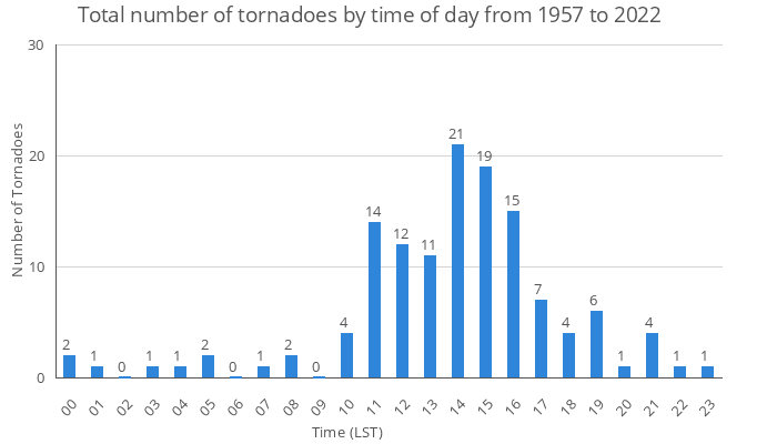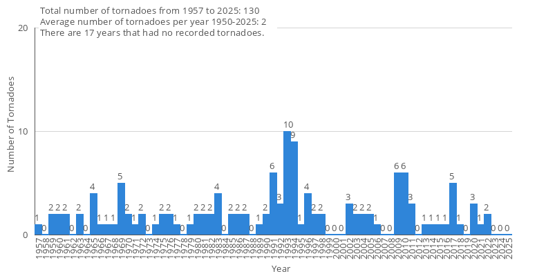 The paths on the map above represent the tornado tracks of all the tornadoes listed in the table below. You may need to zoom in one or more times to view the shorter tracks.