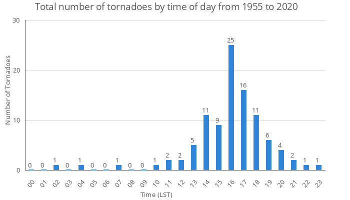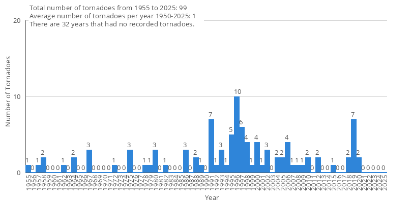 The paths on the map above represent the tornado tracks of all the tornadoes listed in the table below. You may need to zoom in one or more times to view the shorter tracks.